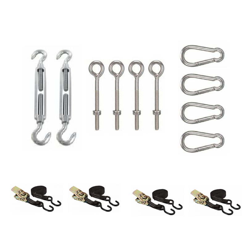 RVS Bevestigingsset vierkant 4 palen(Inclusief 4x S-haak en 4x D-sluiting)