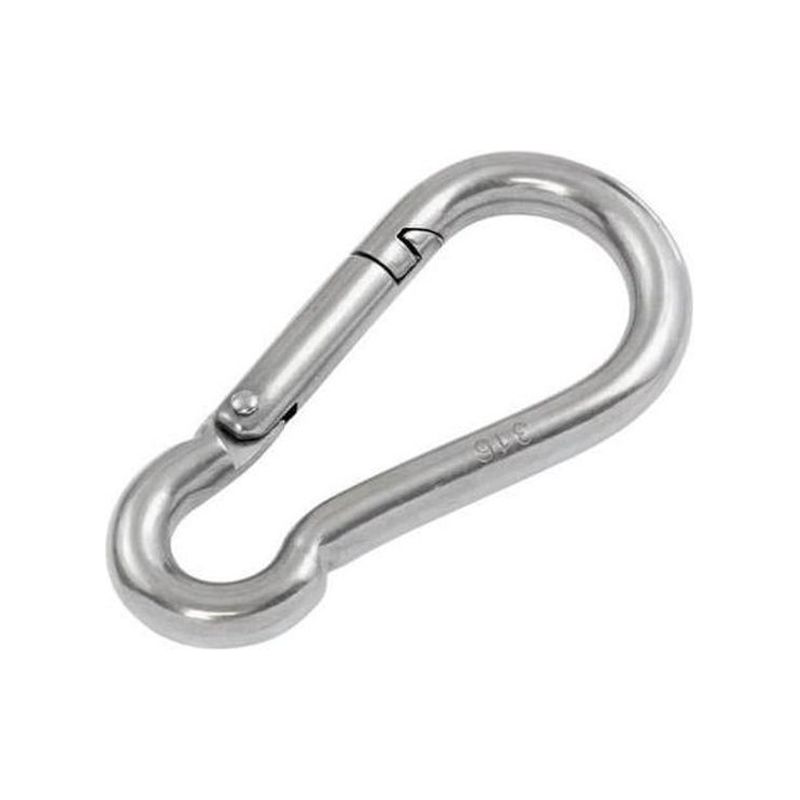 Een karabijnhaak kent veel verschillende toepassingen! Zo kan je een karabijnhaak gebruiken om touwen ergens aan te bevestigen, om spullen aan een ring of kabel te hangen. Om kampeerspullen aan je backpack te hangen, om kettingen vast te maken, om als sleutelhanger te dienen. Enzovoort. Deze RVS karabijnhaak, is natuurlijk ideaal voor buitengebruik!